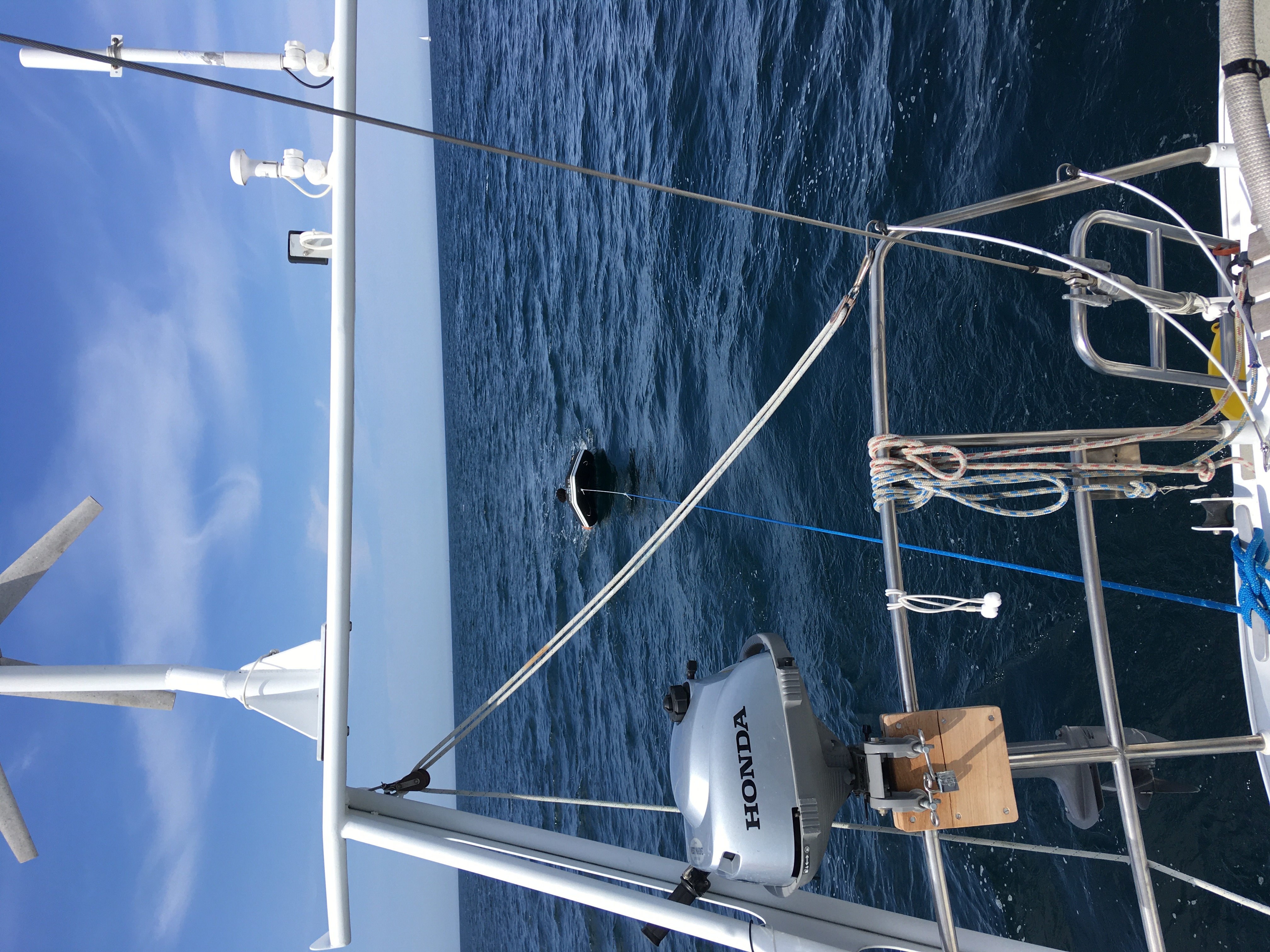 Au mouillage dans la chambre, à l'W de Fort Cigogne. L'eau est bien claire et un bon bain pour les plus téméraires.