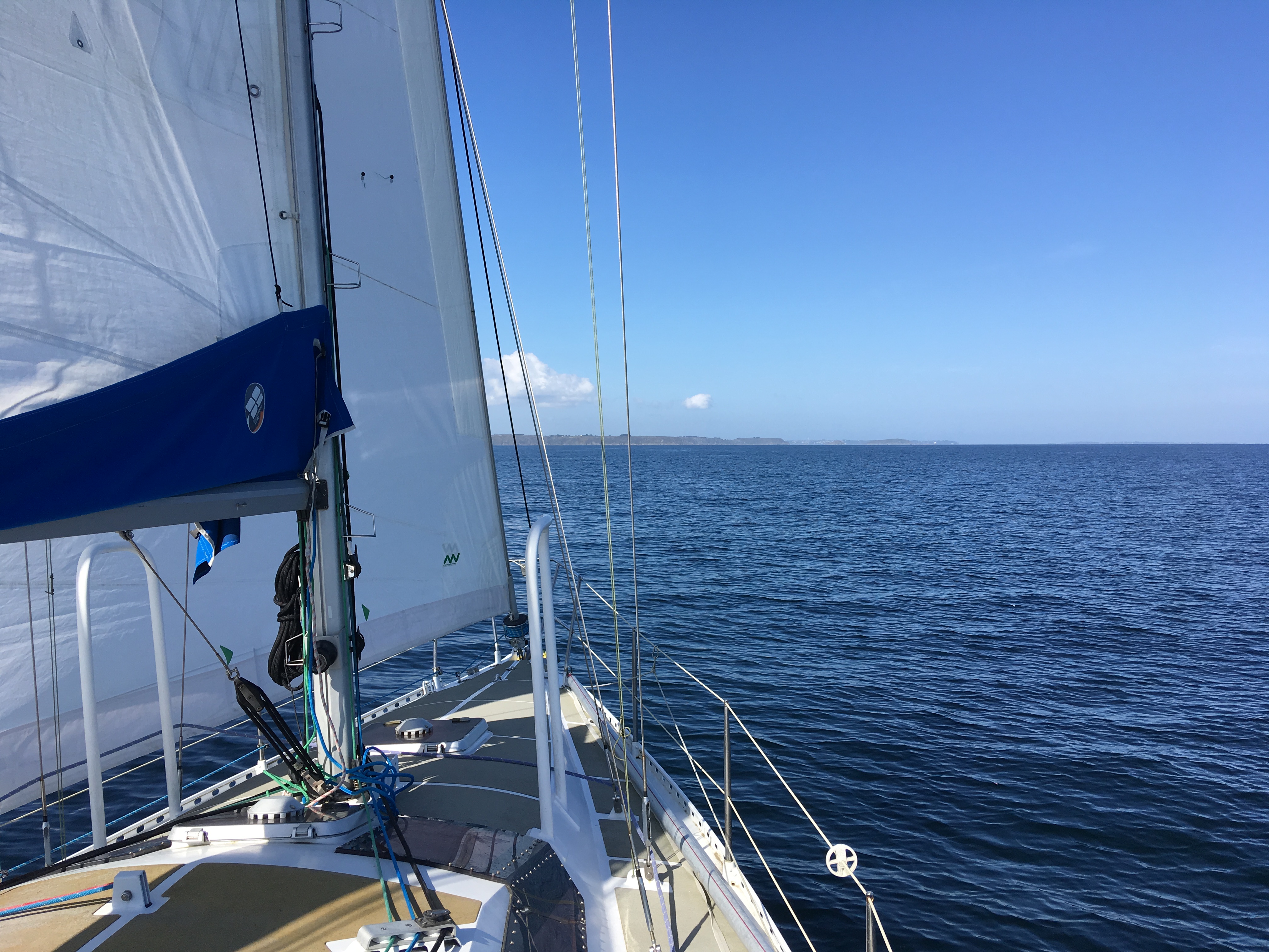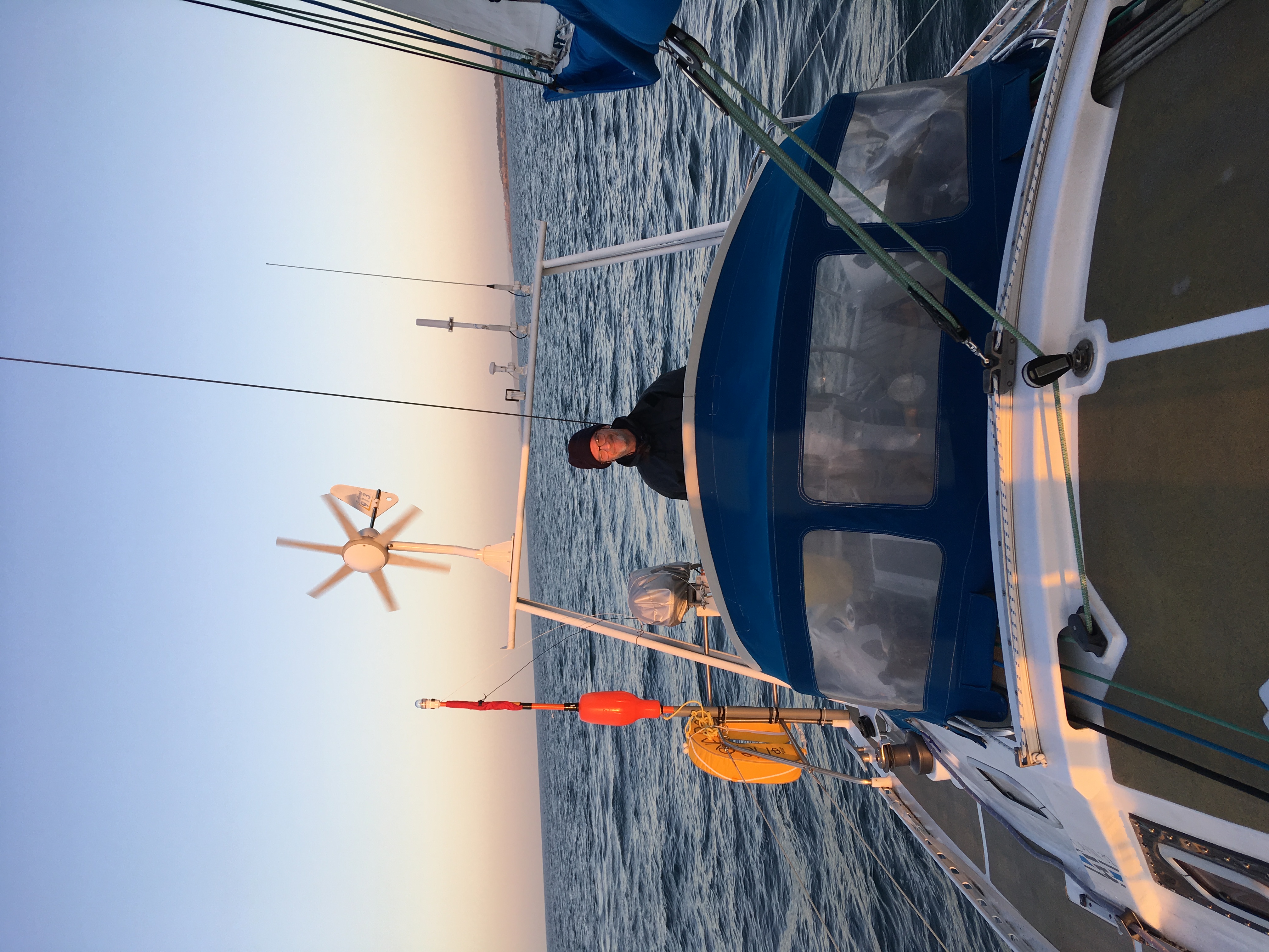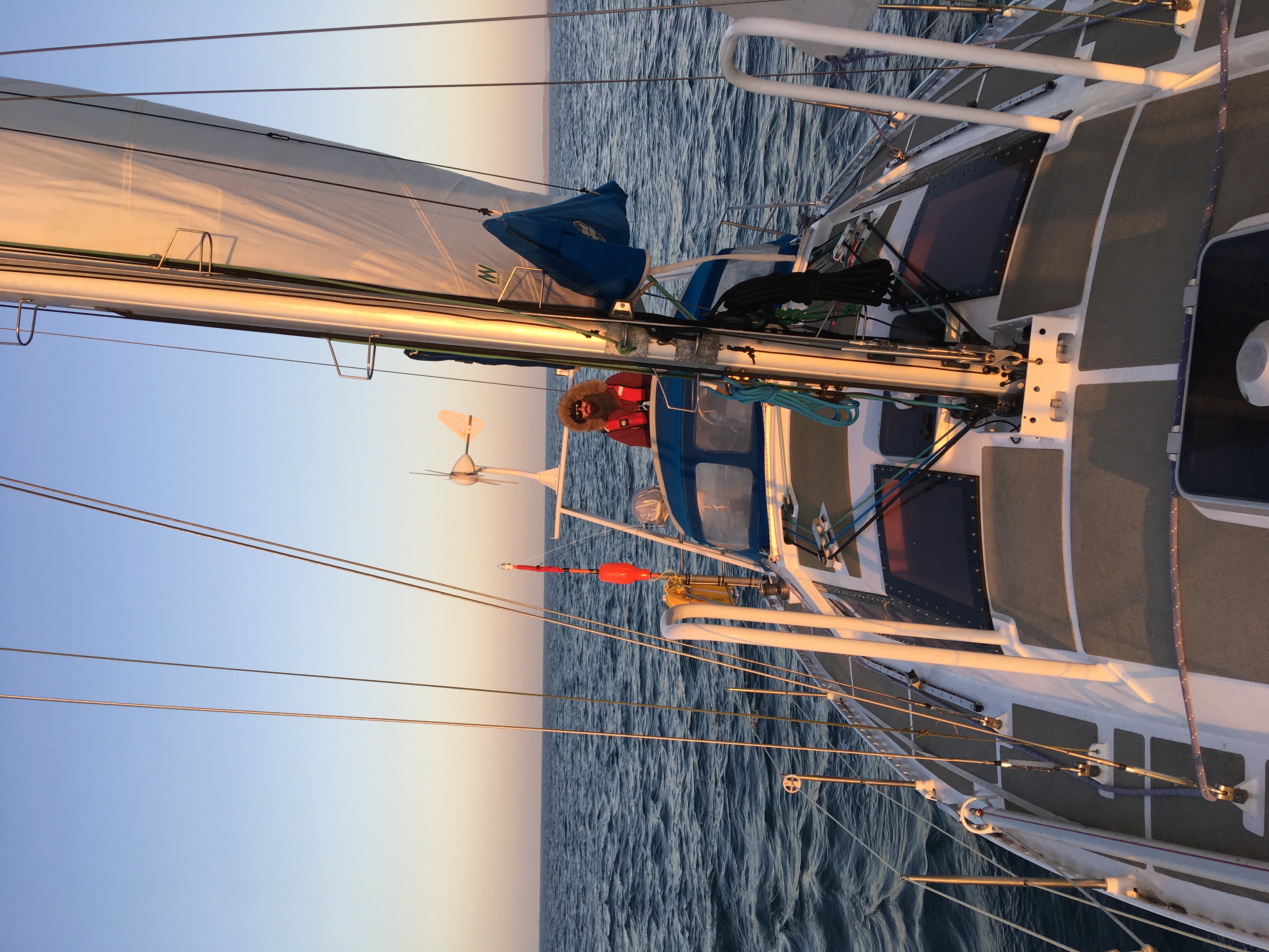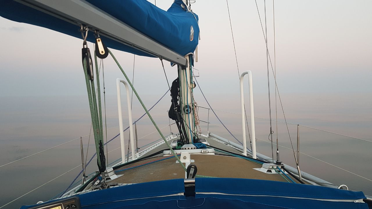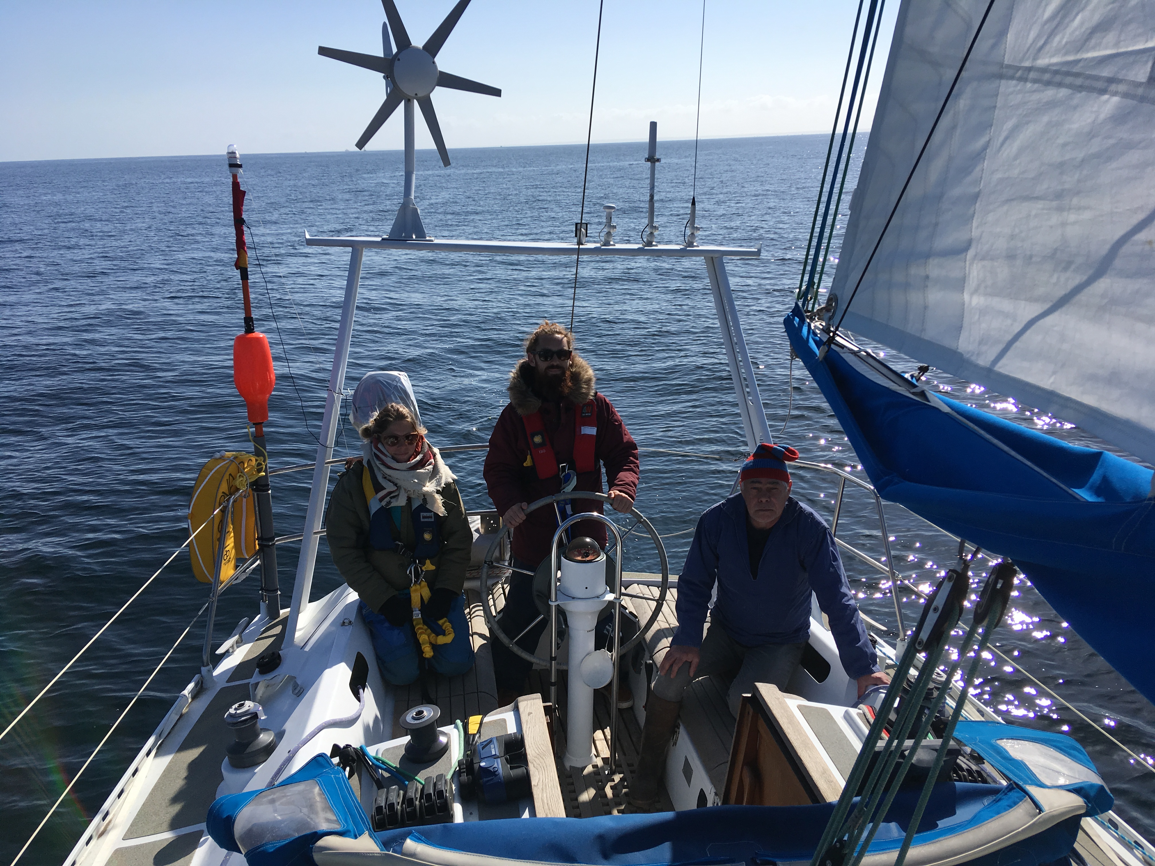 Tellement absorbés par la découverte du bateau en mer, par les manœuvres, et par la bonne brise du nord, nous n’avons pas eu la présence d’esprit de prendre des photos.