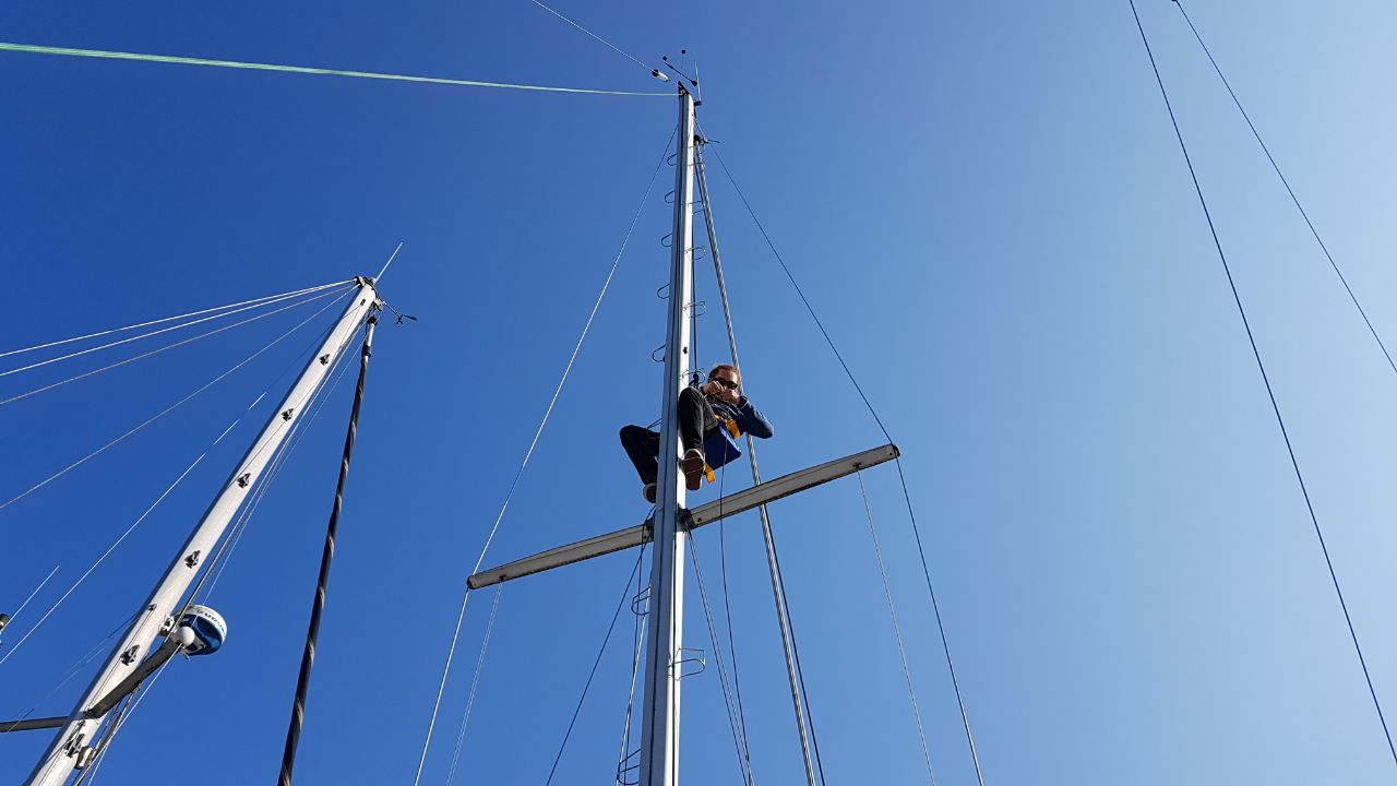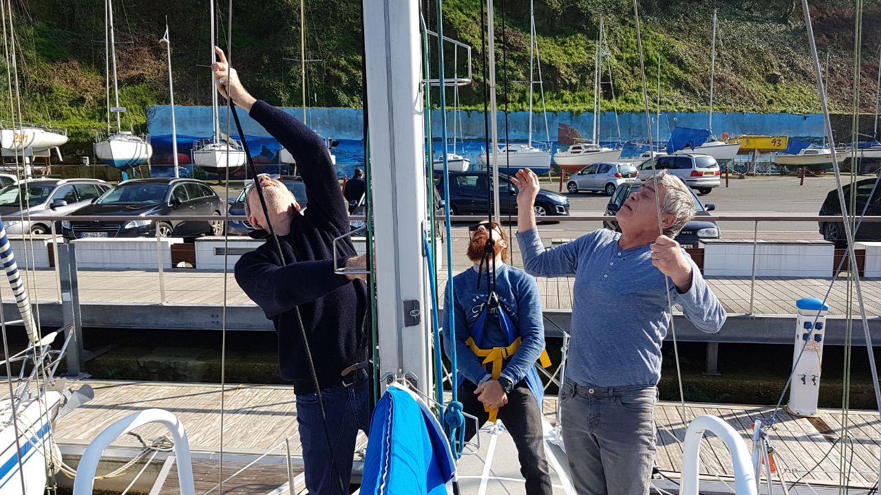 Mise en place du lazzy-bag et lazzi-jack, mise place de la grand-voile, du génois sur l’enrouleur.
