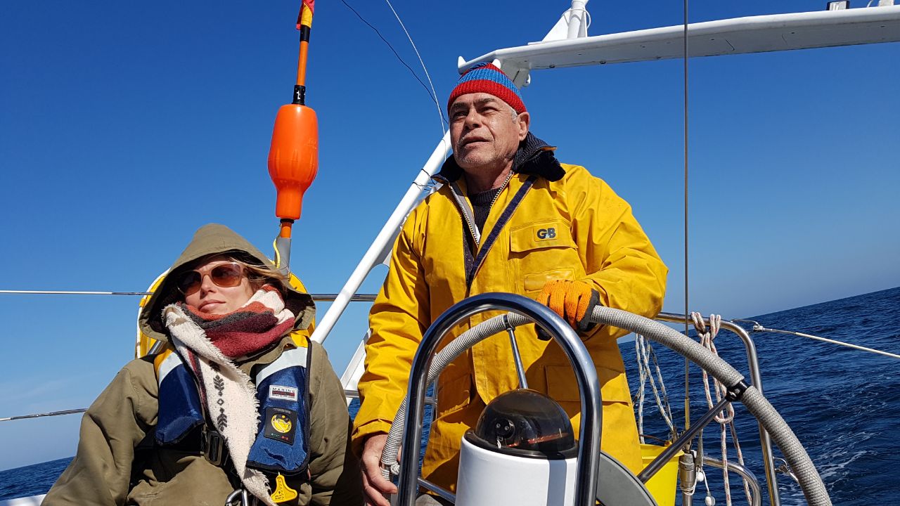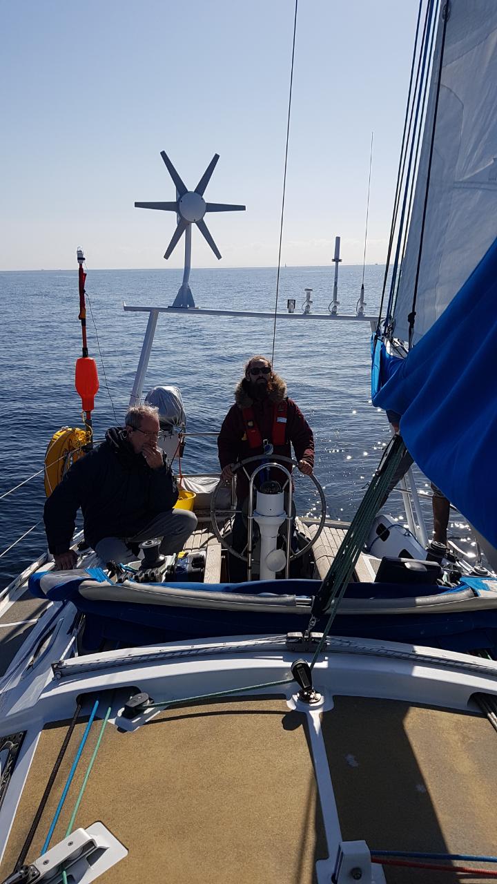L’équipage est composé de mon vieux pote Christophe, sa fille (et ma filleule) Chloé et son compagnon Damien, puis moi-même le skipper.