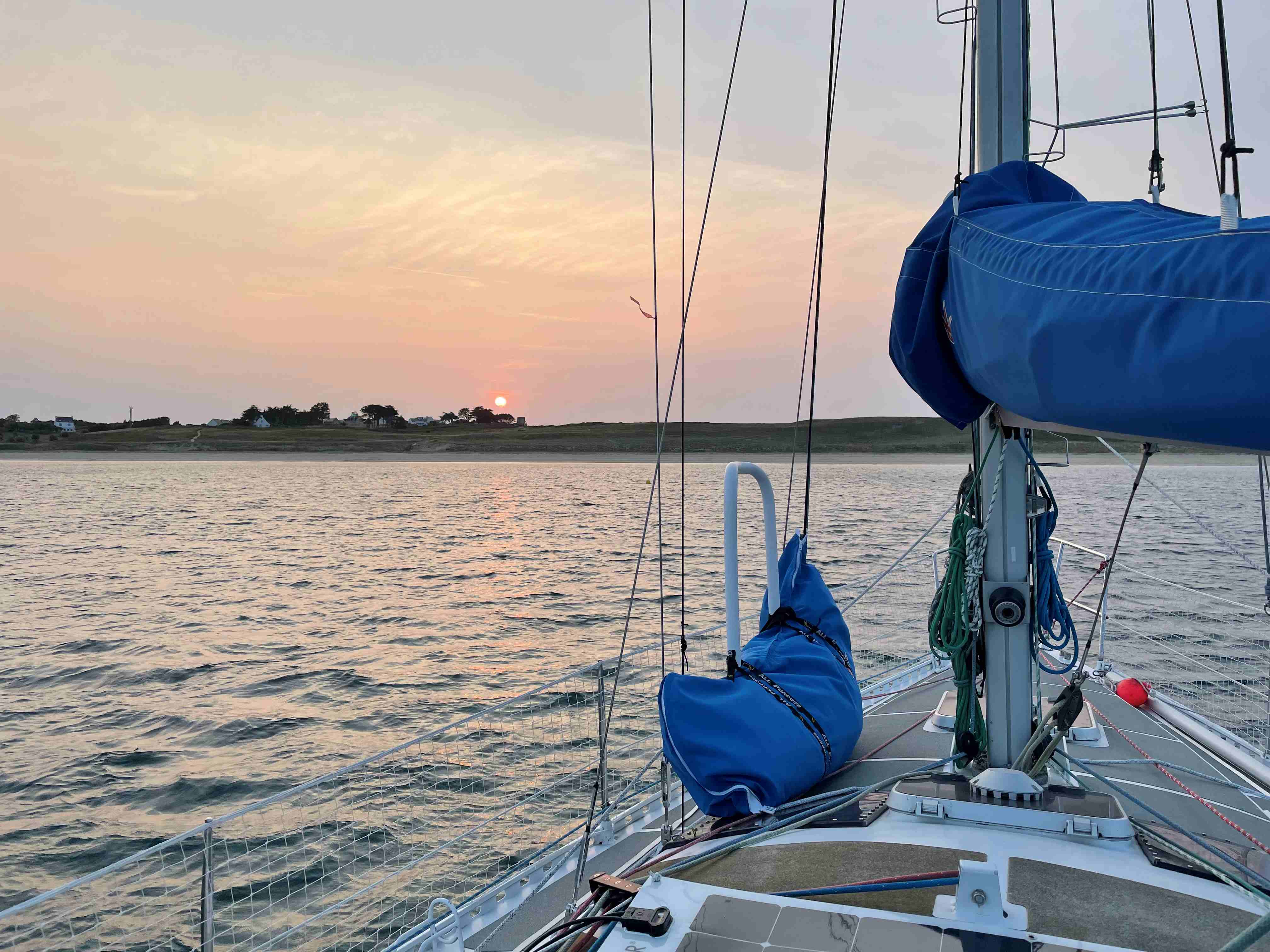 Puis petite nav jusqu'à Houat par le passage du Béniguet, et mouillage devant la Grand plage.