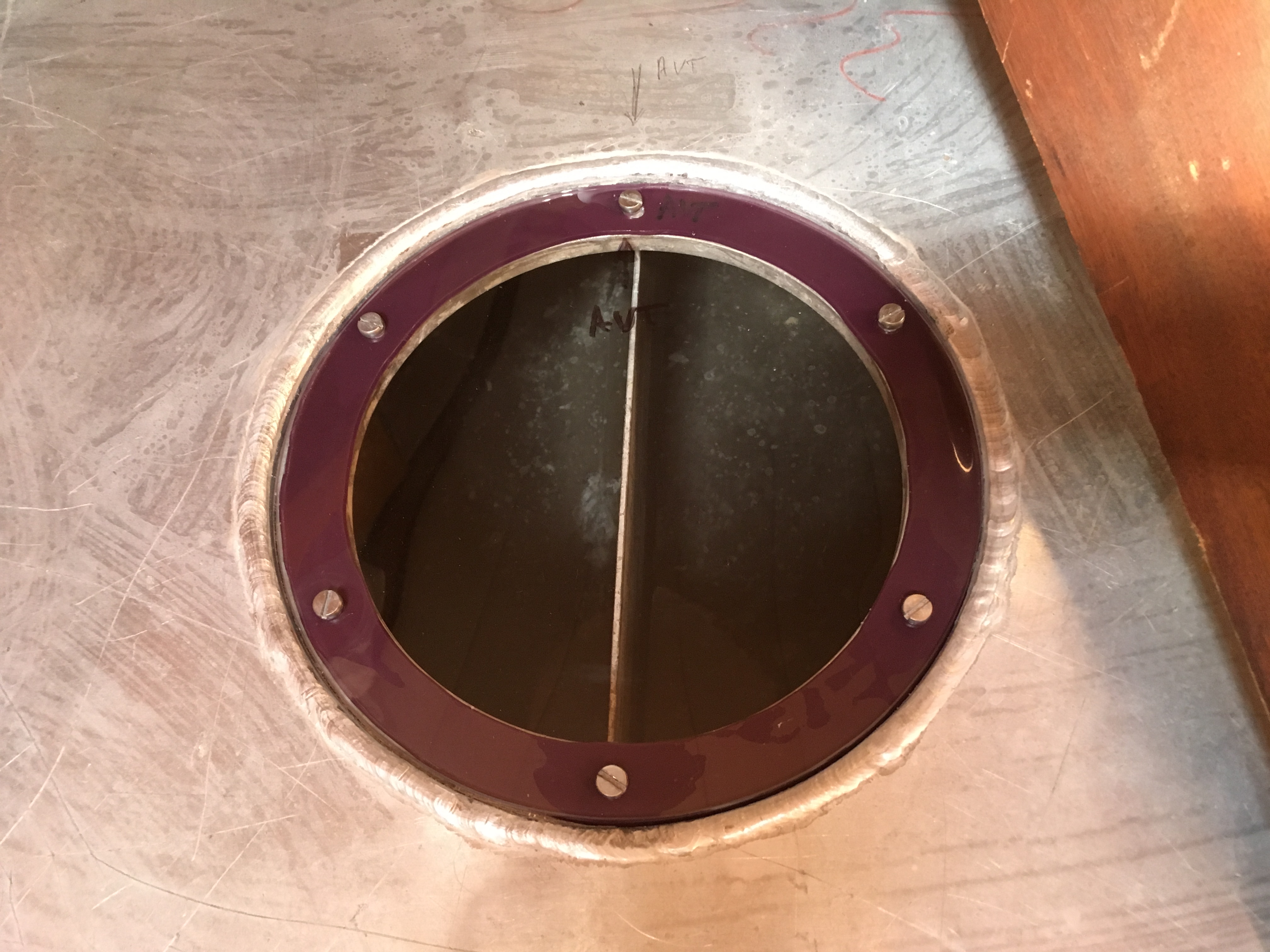 J'ai remplacé la trappe de visite en alu, par une trappe en plexiglass, vissée elle aussi, et étanchée par un joint plat en silicone.