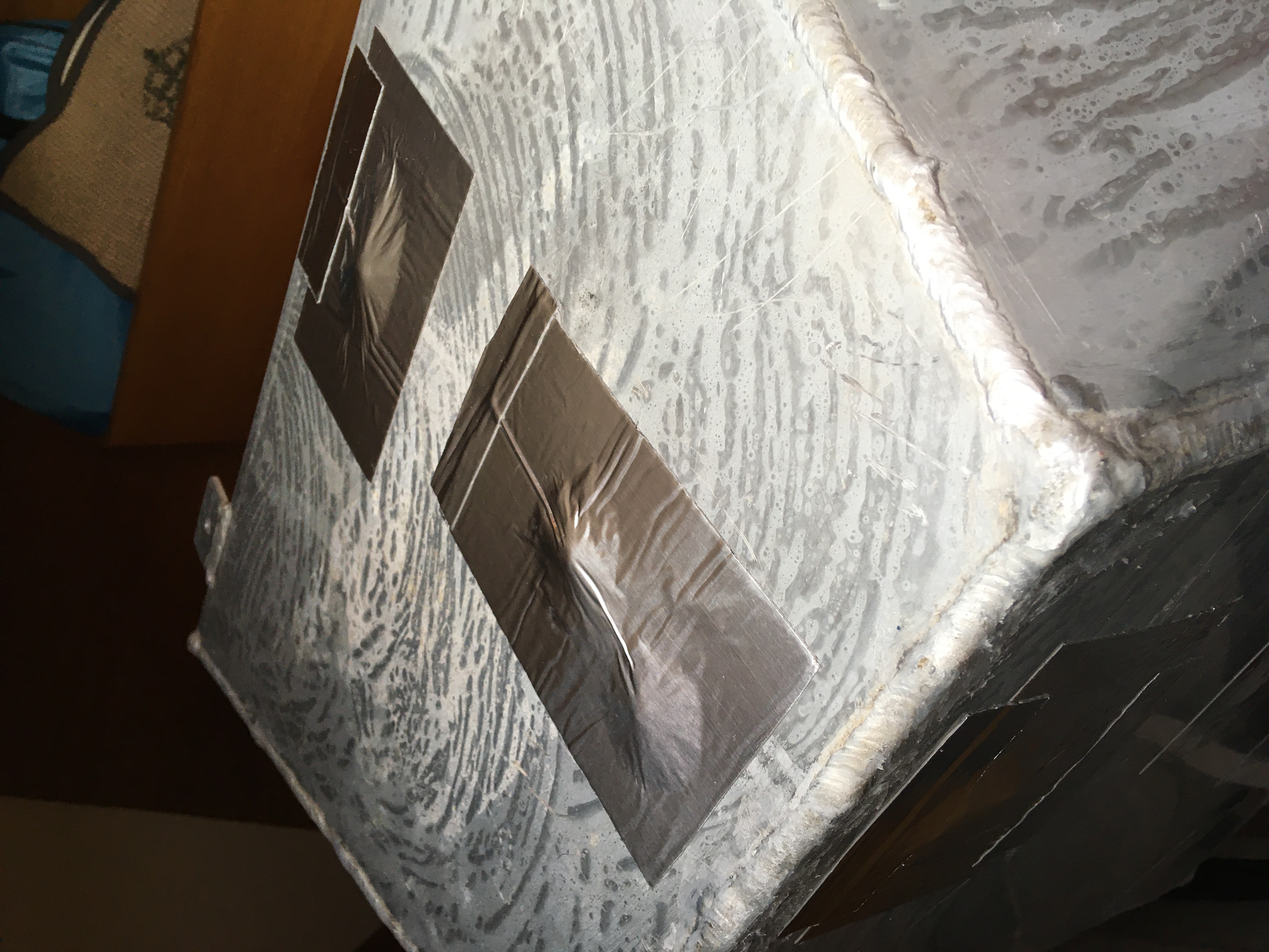 Je réfléchis toujours à une solution définitive : 1- faire recharger en métal les chancres par un soudeur agréé alu, mais vu la quantité ça me parait difficile, 2- faire réaliser un nouveau tank alu identique, mais vu les problèmes de corrosion ça ne me plait pas vraiment, 3- faire réaliser un nouveau tank en PVC collé sur mesure, ce serait peut-être la meilleure solution, budget à voir, 4- découper le dessus du tank et y insérer une outre souple ...
