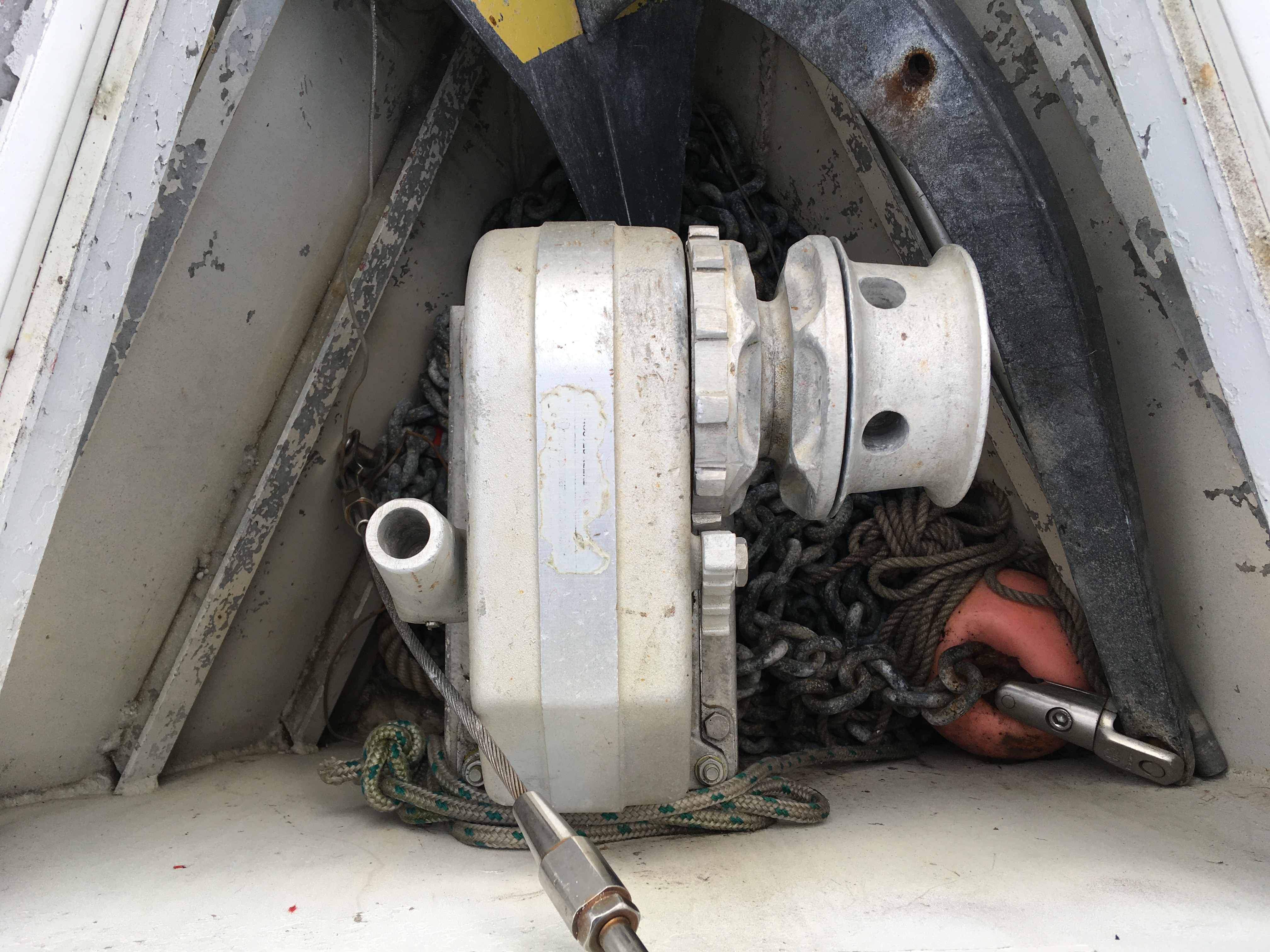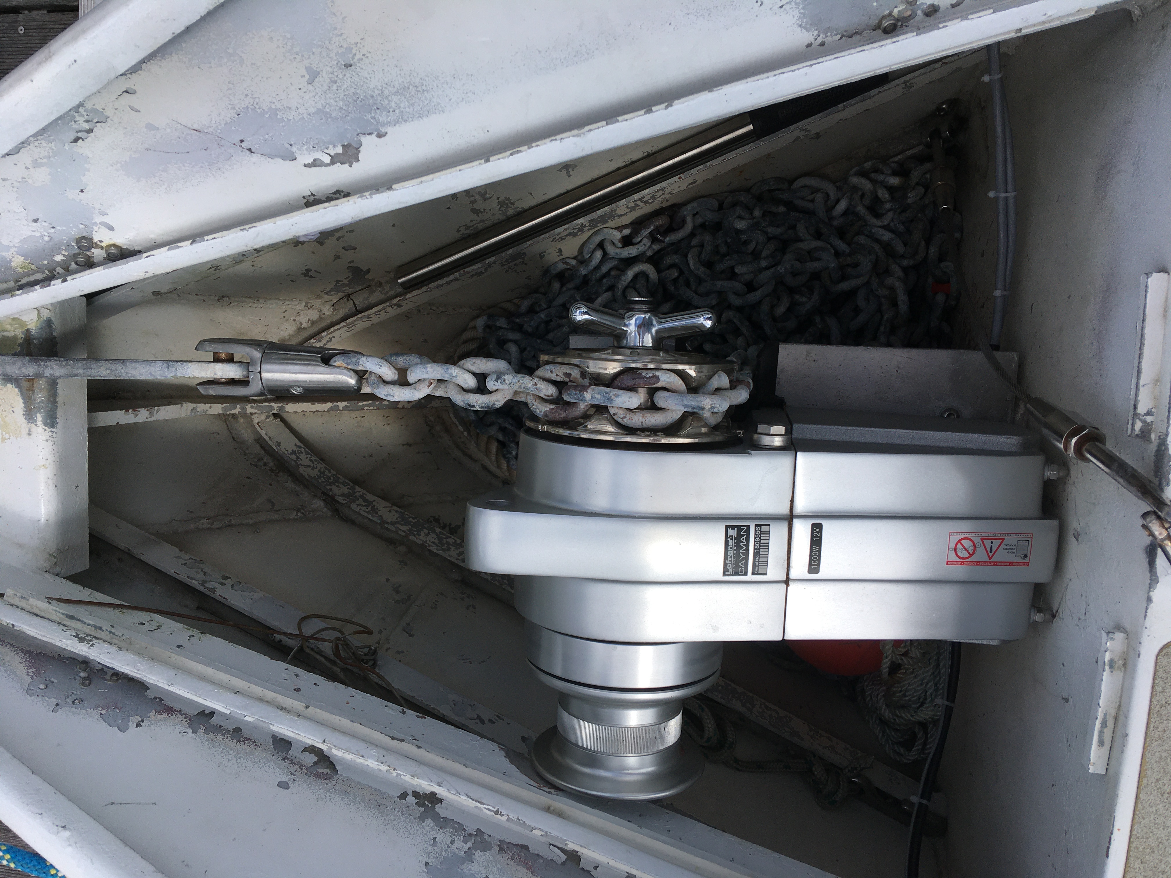 J'ai remplacé l'ancien guindeau GOIOT 308 manuel, par un guindeau électrique LOFRANS CAIMAN 88 de 1000 Watts.