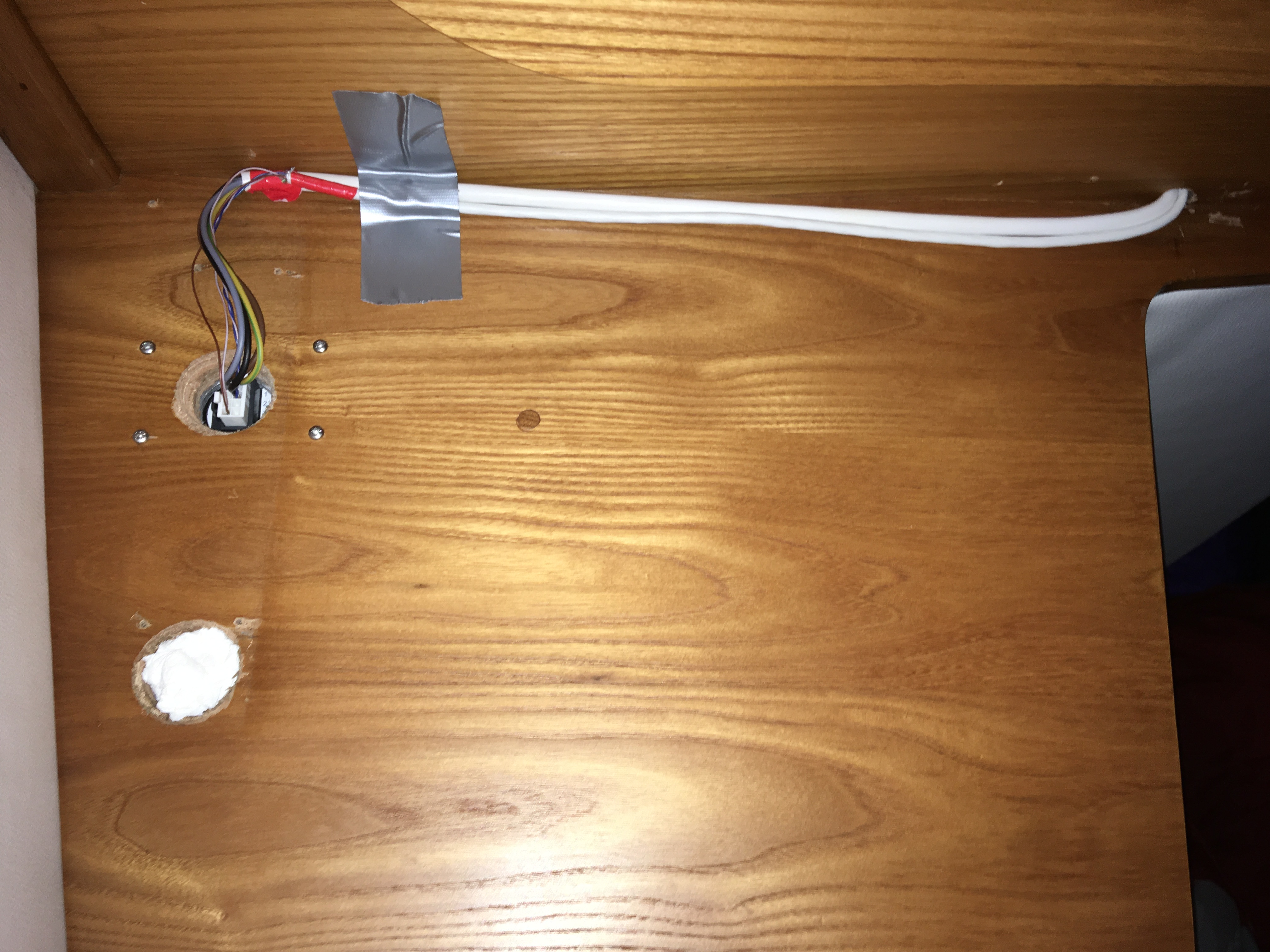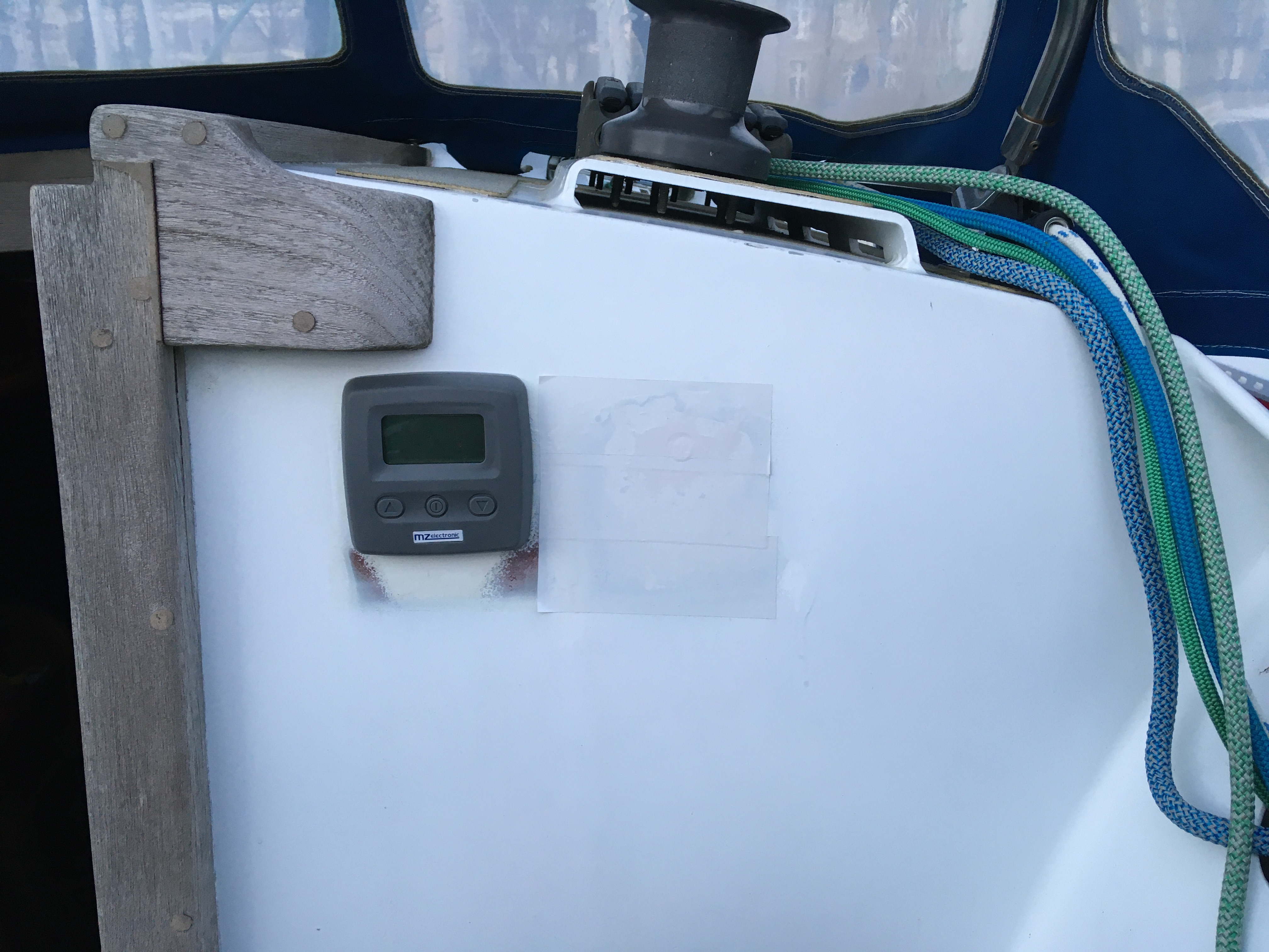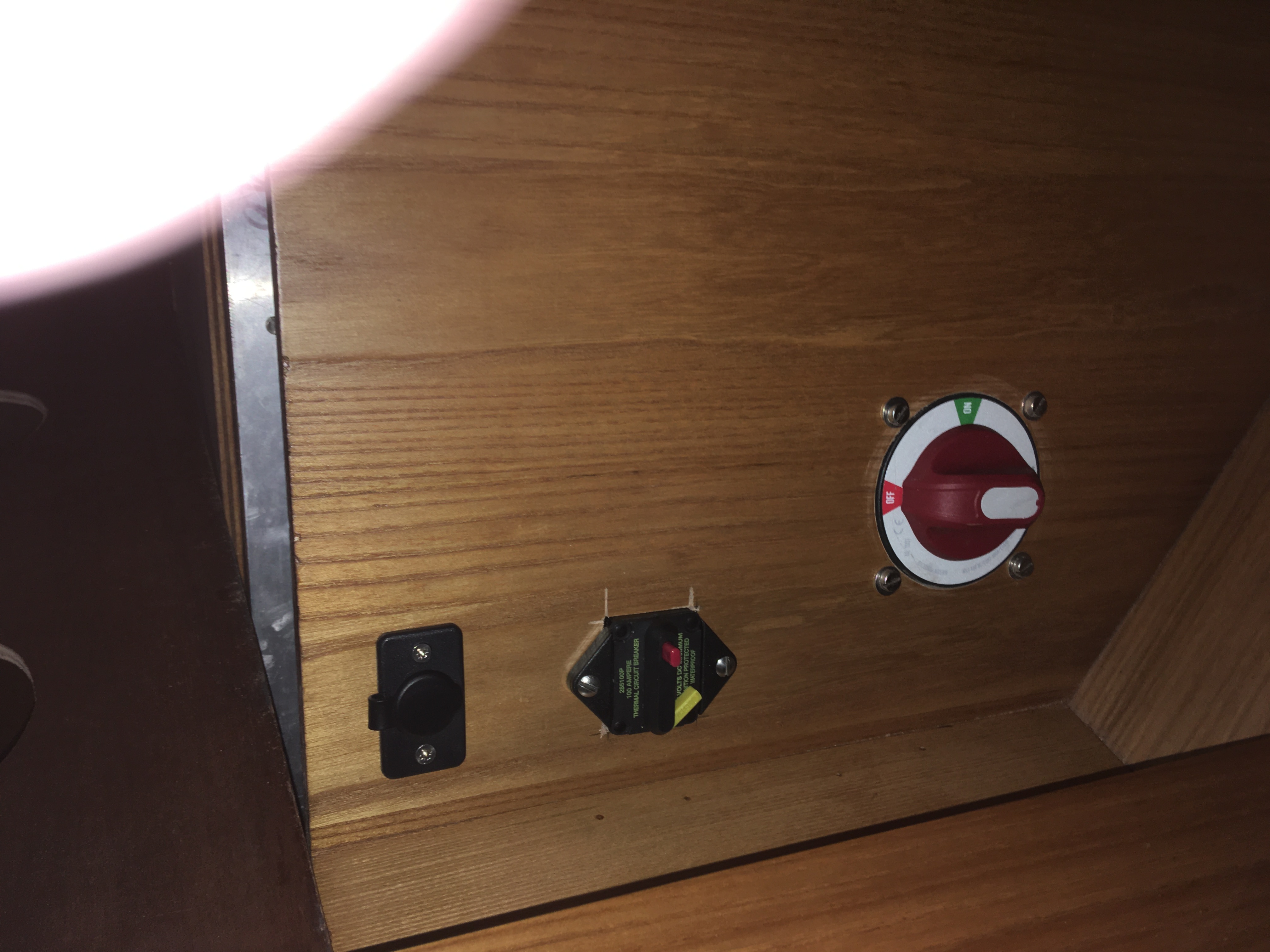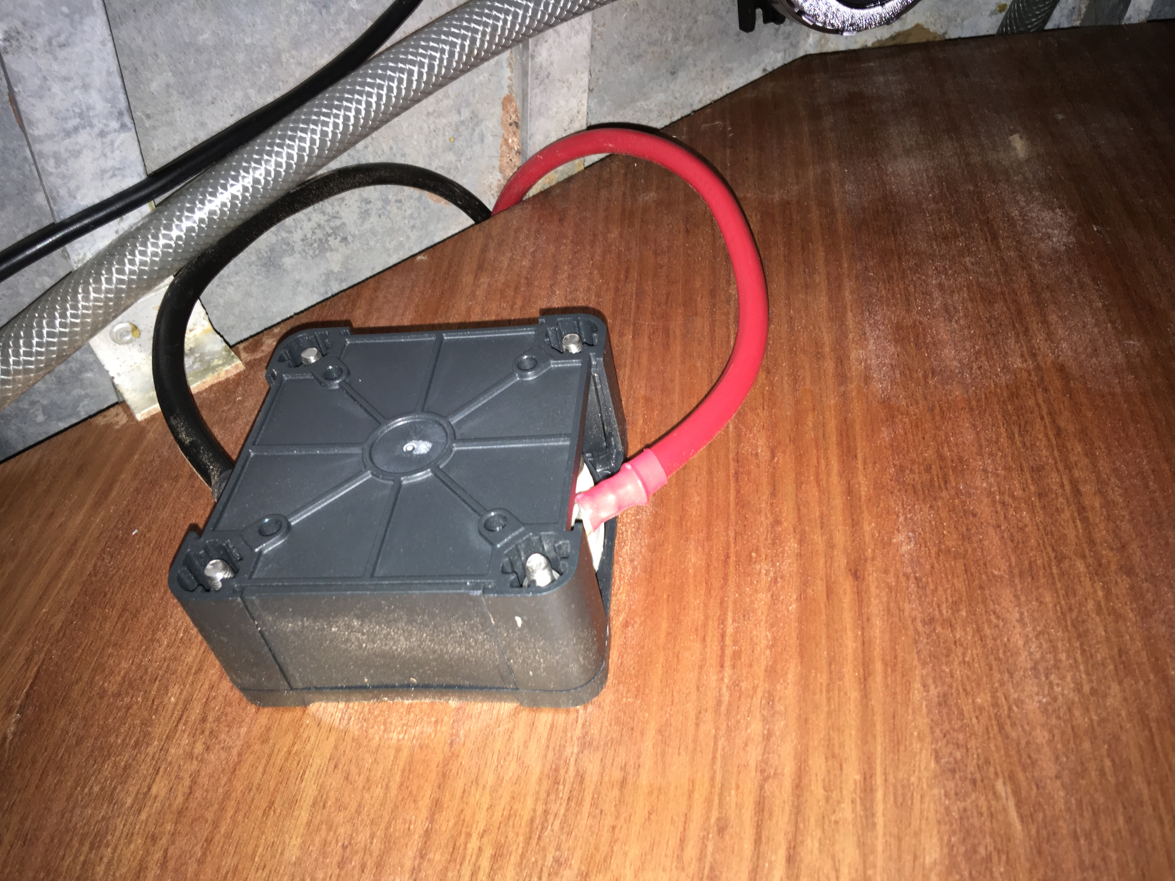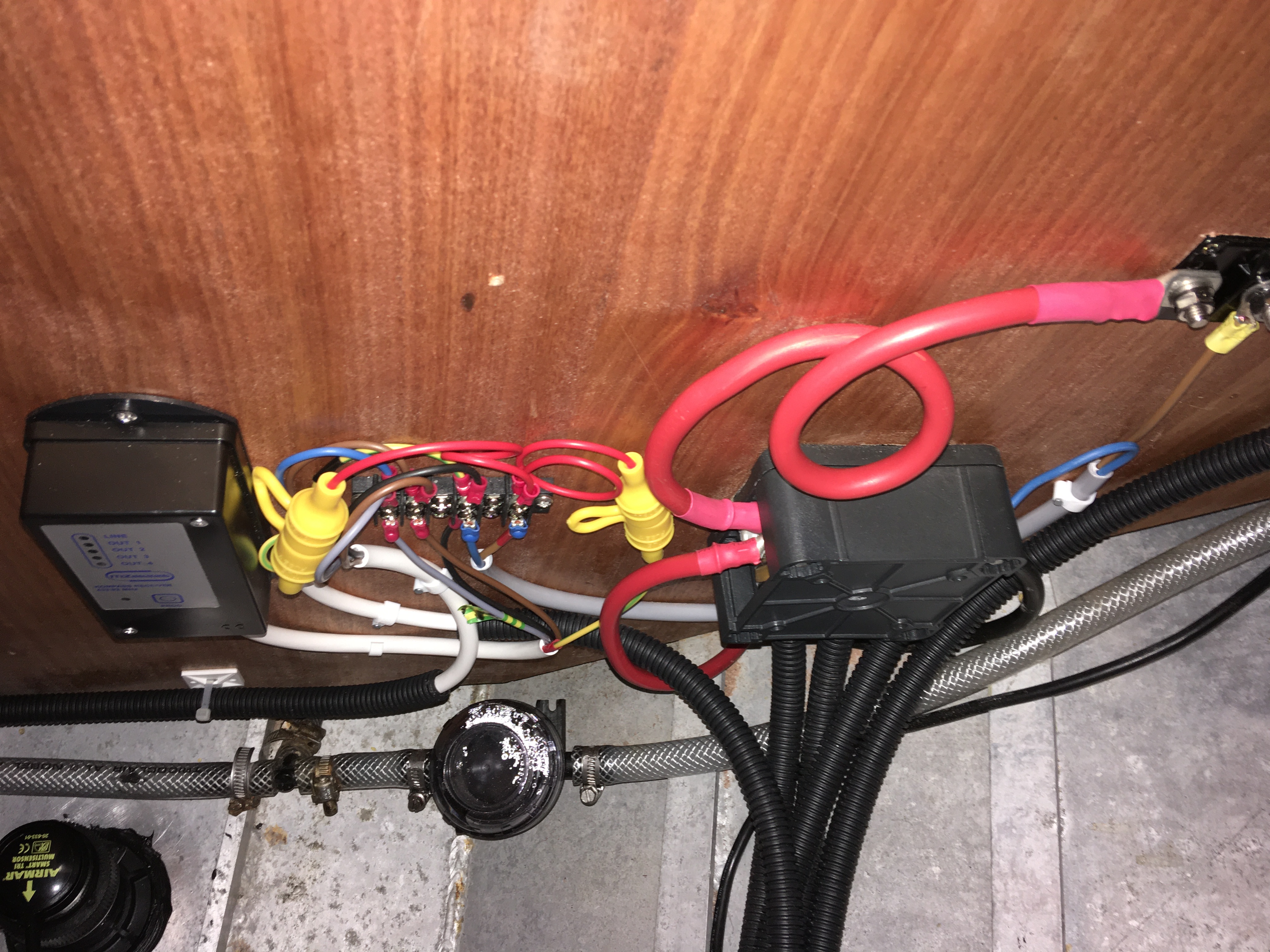 Il m'a fallu faire des regards dans le vaigrage pour raccorder, dans des boites de dérivations étanches, les câbles du guindeau trop courts pour aller jusqu'au relais.