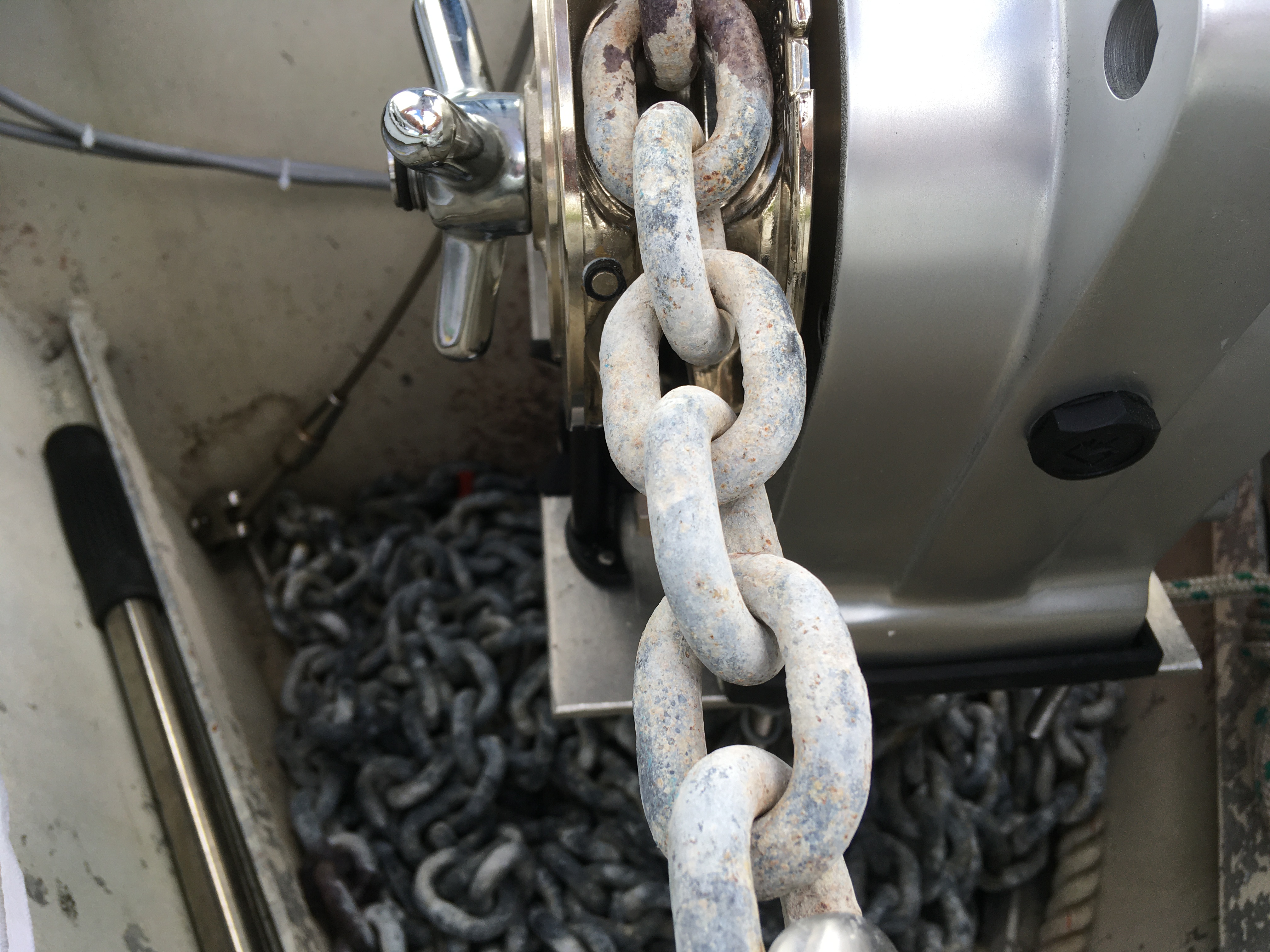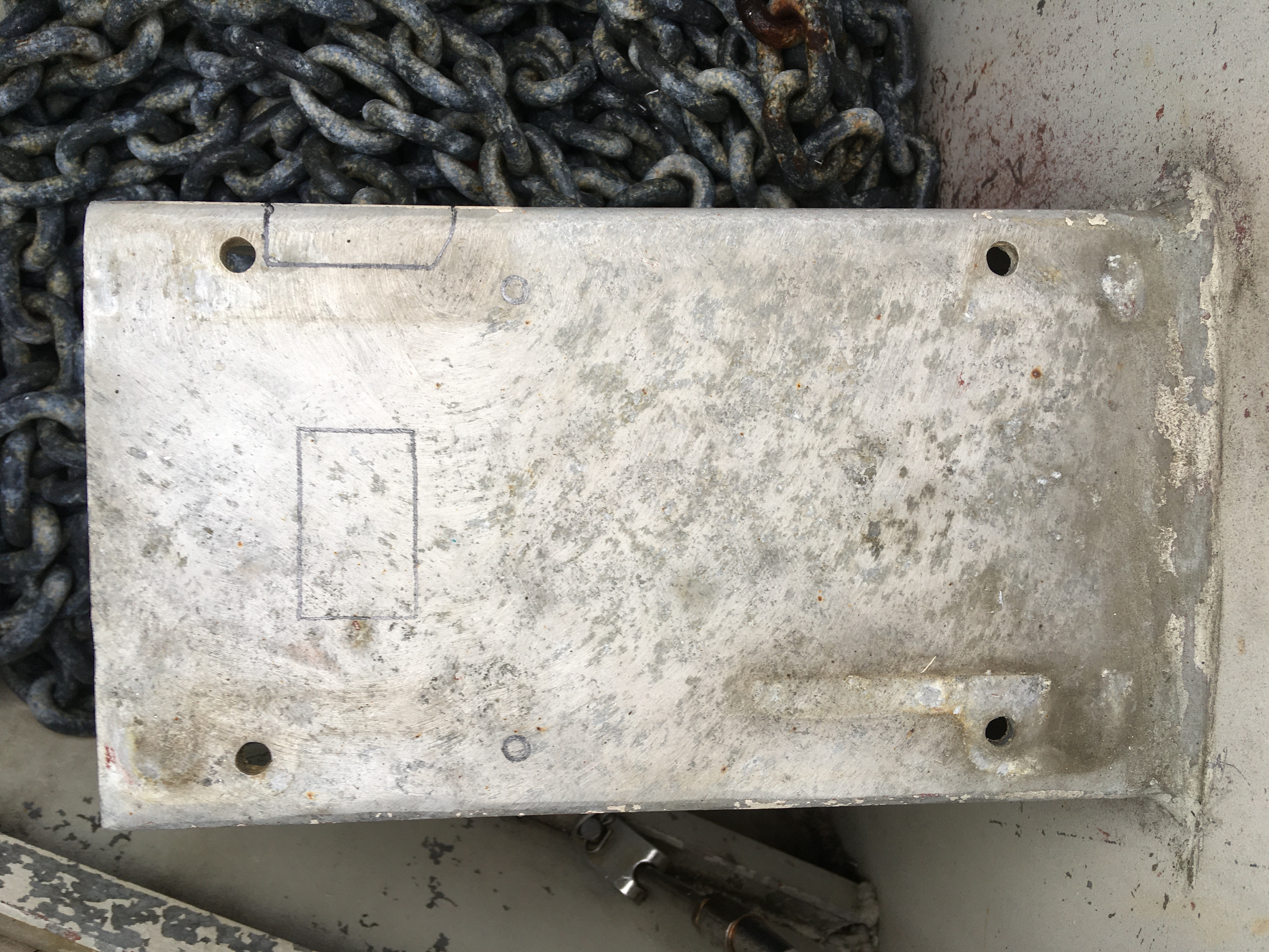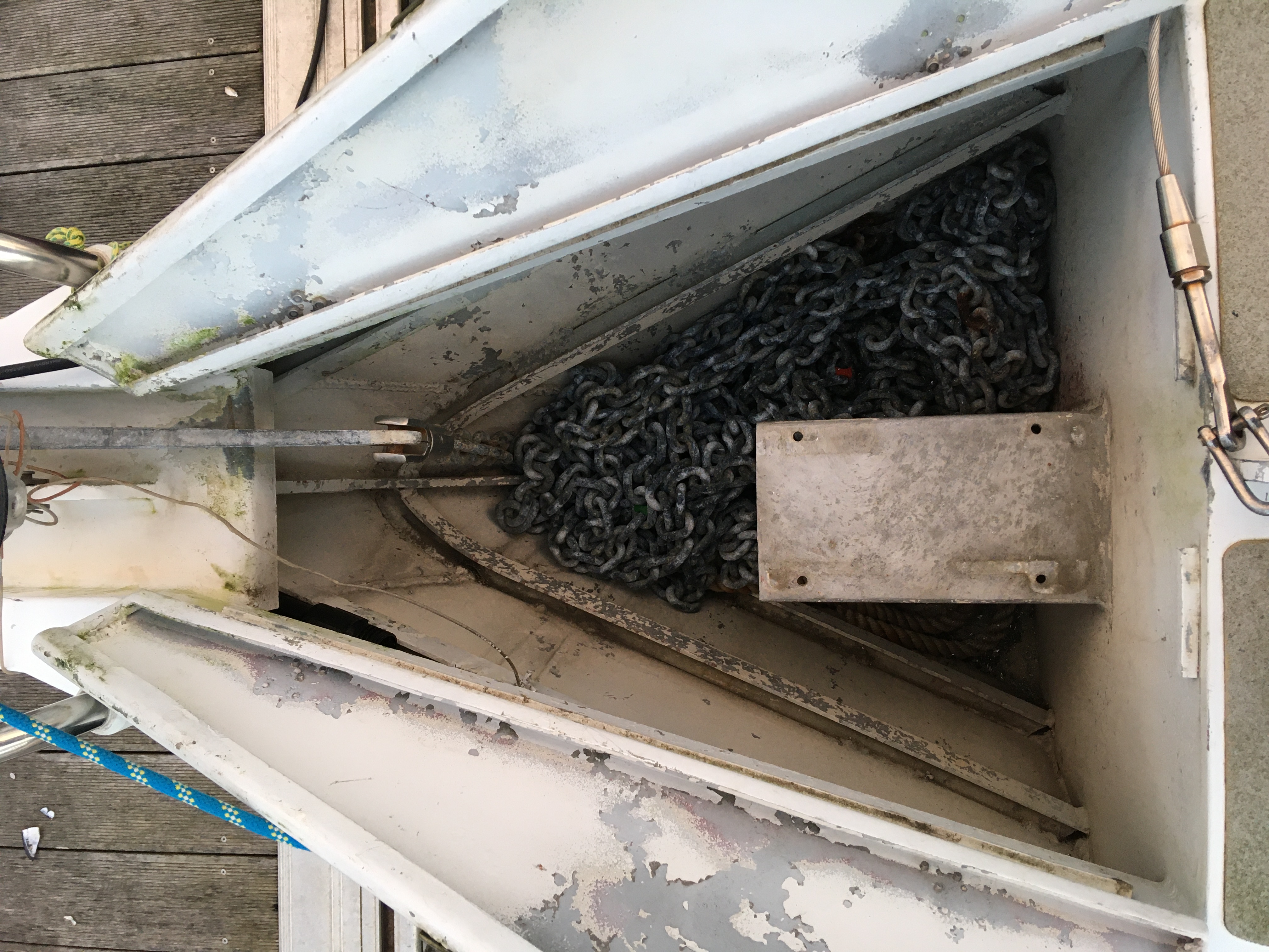 J'ai conservé le support existant mais j'ai dû y ajouter une platine en AG4 de 6 mm boulonnée, pour allonger la portance du nouveau guindeau.