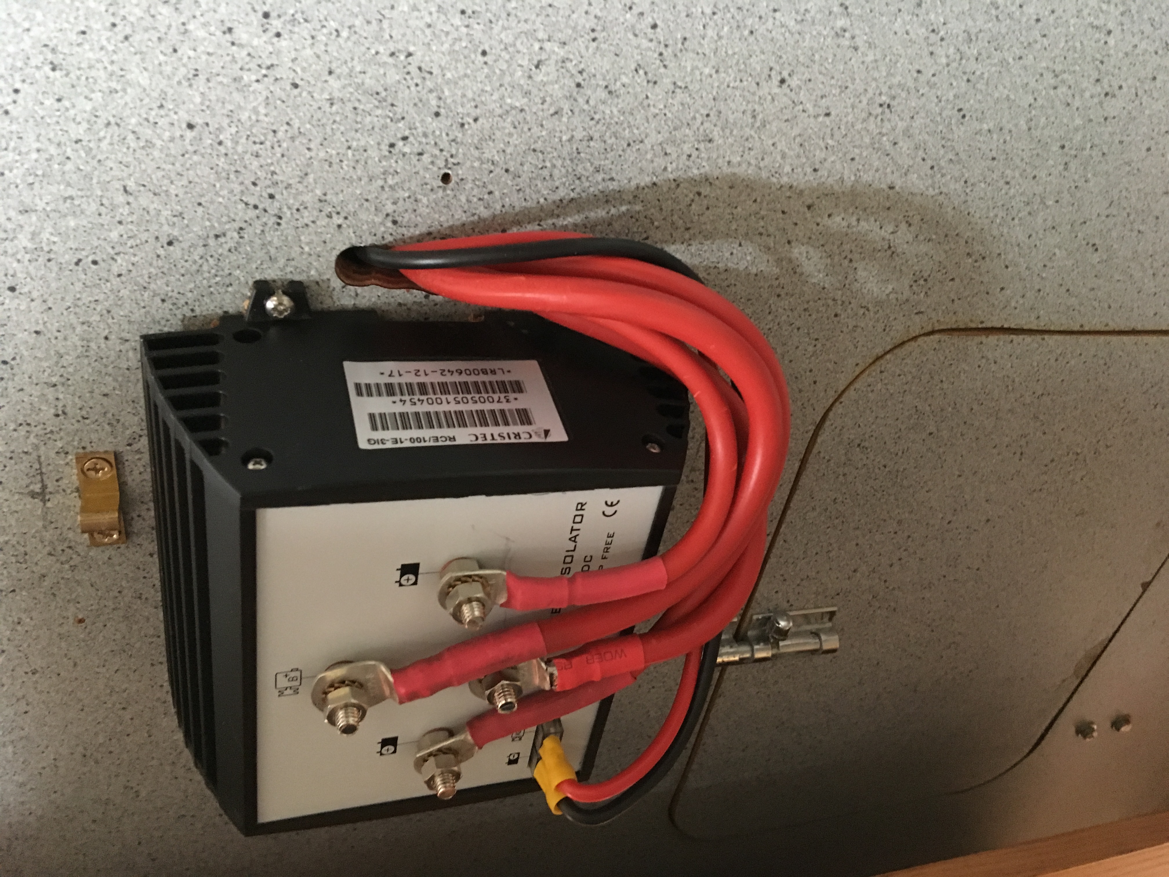 De façon à recharger les 3 parcs de batteries (moteur, service, guindeau) de façon optimale à partir de l'alternateur du moteur, j'ai installé un répartiteur électronique CRISTEC 100 A RCE/100 – 1E-3IG à trois sorties.